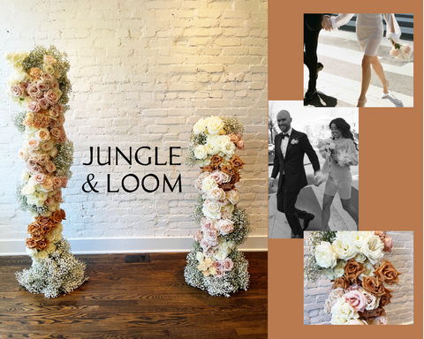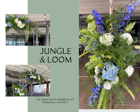 Jungle & Loom creates unique greenery and floral installations for weddings, corporate events, photoshoots, and other special occasions. These installations are completely customizable in size and scope. Jungle & Loom will be responsible for materials, creation, delivery, and pickup.